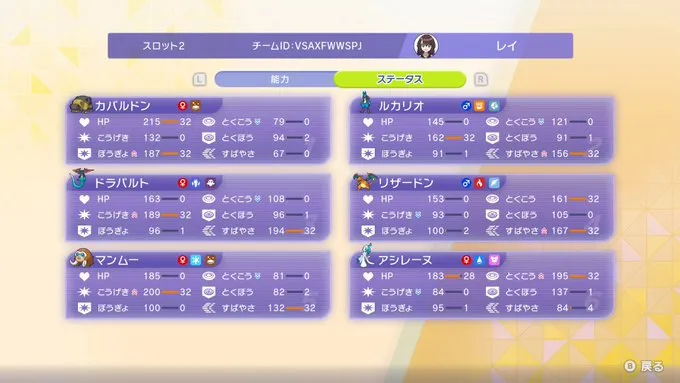 | HP | 攻撃 | 防御 | 特攻↓ | 特防 | 素早↑ | ||||||||||||||||||||||||||||||||