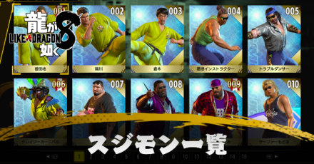 龍が如く8のスジモンファイターの一覧です。
