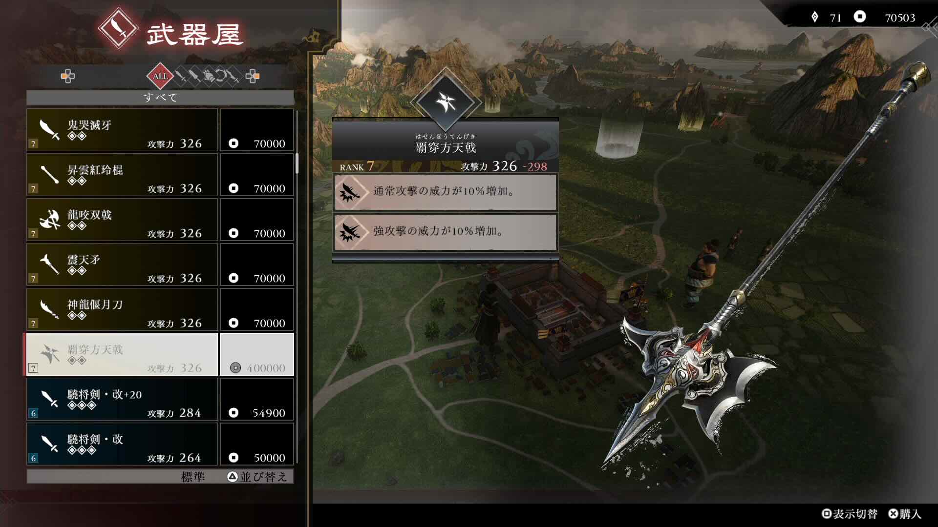 クリア後に追加される難易度無双に挑む者の挑戦をクリアすることで、報酬としてレア8の強力な武器を入手できる戦があります。各武器種ごとに1つはレア8武器があるため、自分が愛用している武器種は必ず取りに行くようにしましょう。参考までに方天戟レア7武器が攻撃力326であるのに対して、レア8の方天戟は624もの攻撃力を誇ります。