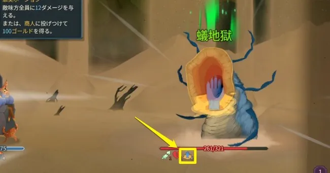 ボスのHPバーの下に記載してある蟻地獄のアイコン(青い手のマーク)で残りの数値を確認しながら戦いましょう。