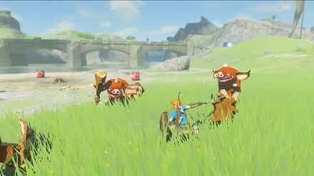 拡大ブレワイは、プレイヤーの数だけ正解があるほどの自由さが魅力です。魔物と戦うにしても、剣と盾で正面から立ち向かう方法もありますが、弓を使い物陰から敵に見つからずに倒したり、近くの爆弾を爆発させて倒したり、辺りの草木に火を付けて一掃したり、水辺や奈落に落として倒したりと、プレイヤーの想像力次第でいかようにも戦い方を変えられます。