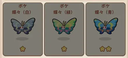 | 蝶々採集 | ・装飾物「探検キャンプ」 ・装飾物「スケッチ板」 ・青竹チケット ┗交換所アイテム |