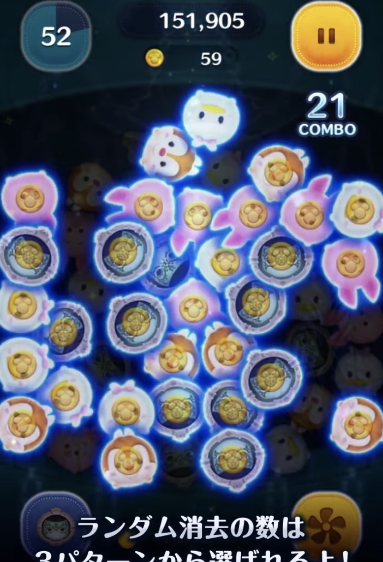 闇の鏡は、スキル発動の際にツムが落ちてくるのを待つ必要がないので、スキルゲージを連打してマイツムを余すことなくスキルゲージに入れ込んでいきましょう。次のスキルゲージにマイツムを持ち越すことができれば、スキル発動がしやすくなります。
