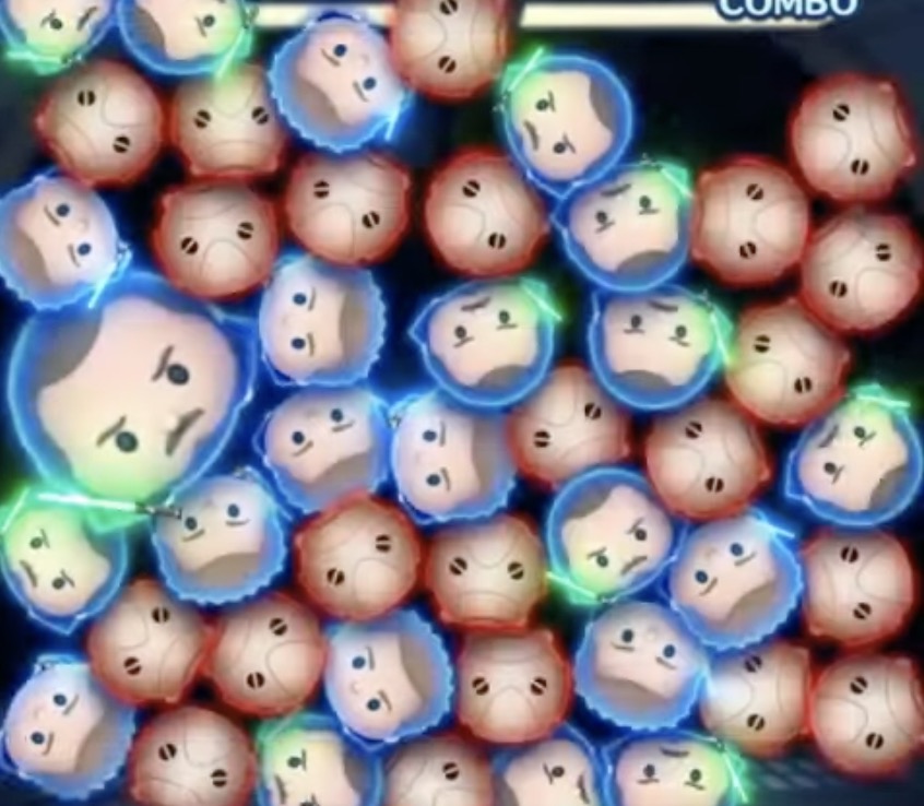 スキル名:1種類のツムを消して少しの間つなぐと周りのツムも消すよ!