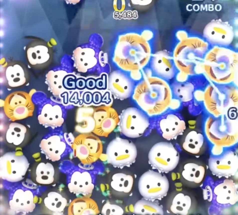 ドナルドのスキル中ジャイロでツムを端に集めることでツムが繋がりやすくなり、発生したそばから消すことができます。また、画面の半分にツムが存在しなくなるためタップのリソースを集中させることが可能です。