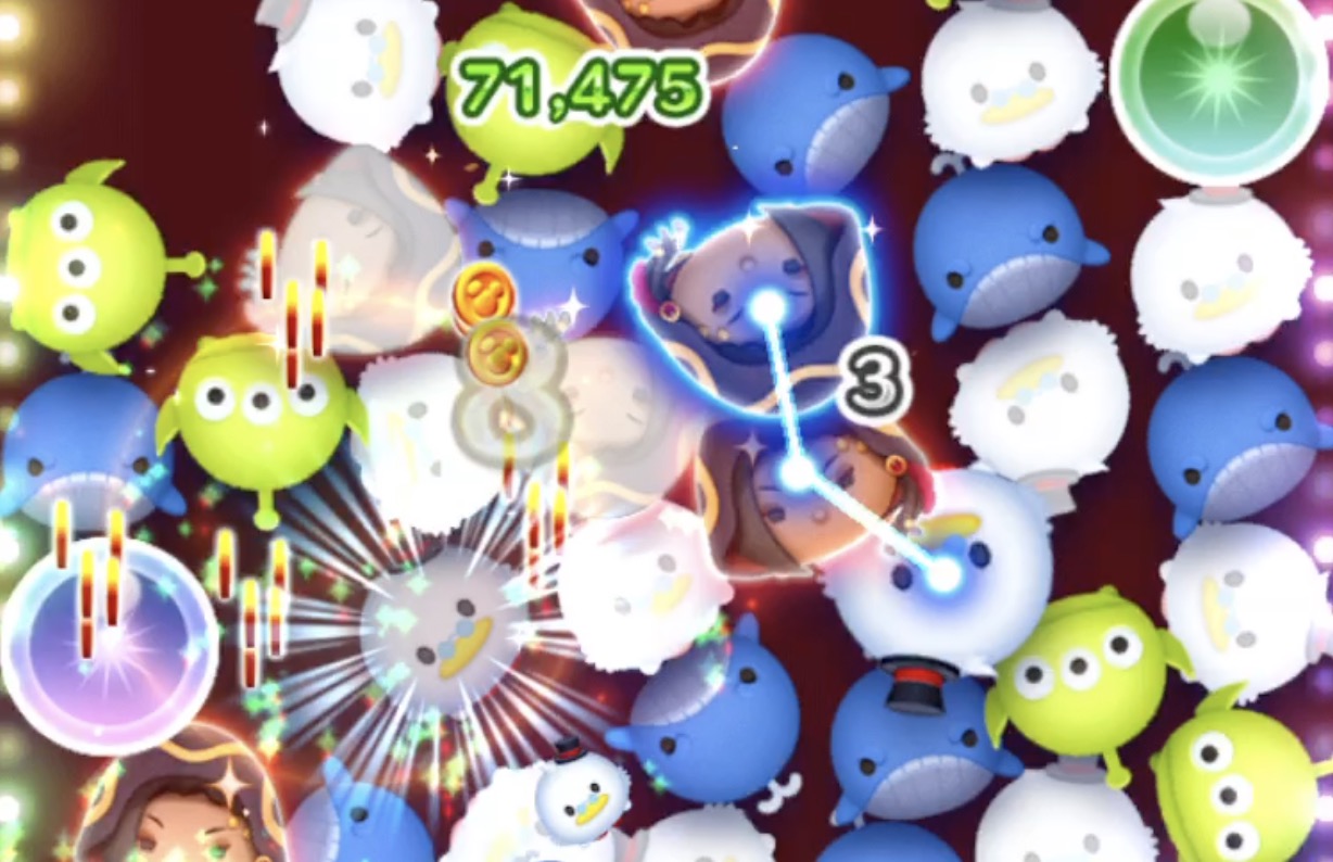 高得点ジャミルをつなげて消すと、周囲のツムも巻き込んで消すことができます。ロングチェーンをつなげることは難しいスキルですが、タイムボムなど特殊ボムは出しやすいです。
