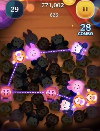 ソーイングミニーのスキルはランダムに選ばれたツムを線上につなぎ、ツムとツムの間にいるツムをまとめて消すスキルです。ランダムに選ばれたツムの配置によって消去数が大きく変わるので、消去数は安定しにくいスキルです。