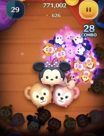 ソーイングミニーはスキルレベル6まで育つとスキル時のツムの配置によっては40個近いツムを消すことができます。しかし、スキルにコインマイナス補正がかかっているので上位のツムのようにコイン稼ぎで活躍することはできません。