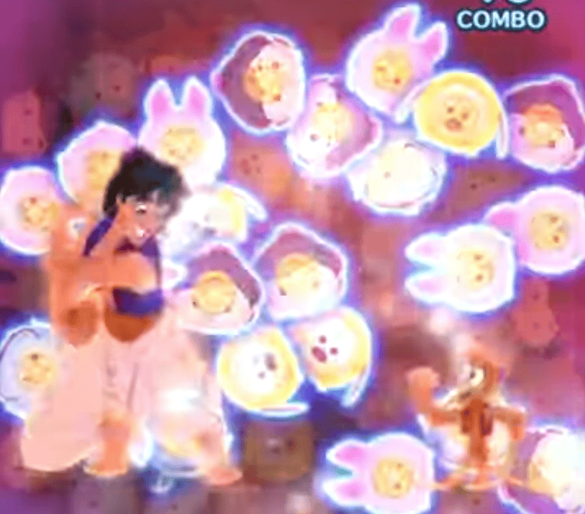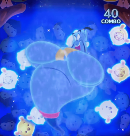 ジーニーのスキル中にアラジンをスキルを使うと、1種類のツムを消したあとに一定回数繋げたツムの周りを消します。スキル中は1種類のツムが消えた状態になるので、実質3種類の状態でツムをつなげることができます。