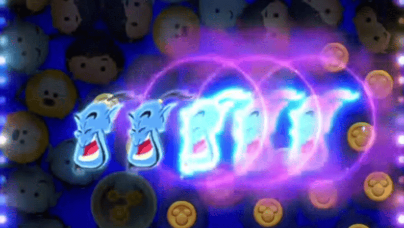 アラジン+ジーニーのスキル中にジーニーのショータイム演出が入ると、さらに1種類のツムが消えた状態になります。5▶︎4アイテムありであれば盤面がアラジンとジーニーの2種類だけになるので、ロングチェーンを連発してスコアやコインを稼ぎやすくなります。