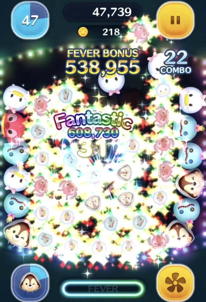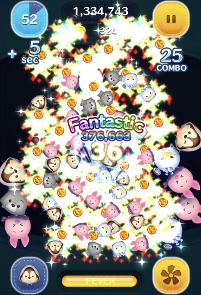 チップWhatWeGotVerは、スキルでツムを大量に消してスコアを稼ぐツムなので、獲得スコアが3倍になるフィーバー中にスキルを使うようにしましょう。