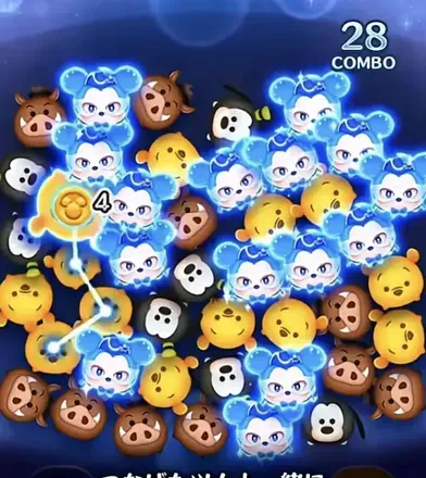 マイツムを繋げた場合は消去範囲画像化します。スキル中はとにかくマイツムを優先して繋ぐことでスコアやコインを稼ぐことができそうです。