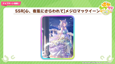 パワータイプサポート、「SSRナイスネイチャ」が実装されます。固有ボーナスは絆ゲージが100以上の時、パワーボーナスを獲得できる効果となっており、その効果はパワーボーナス3個分の効果となることが発表されました。