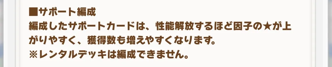 継承専用ウマ娘の仕様として、編成したサポートカードの凸(上限解放)が進んでいるほど因子の星が上がりやすく、獲得数も増えやすくなるというものがあります。