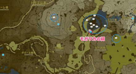 (1)ゾラ台地鳥望台にワープして鳥望台から高く飛び上がる (2)モガワカの祠はゾーラの里の入り口付近にあるので、パラセールなどで東にあるゾーラの里を目指すと祠があります |